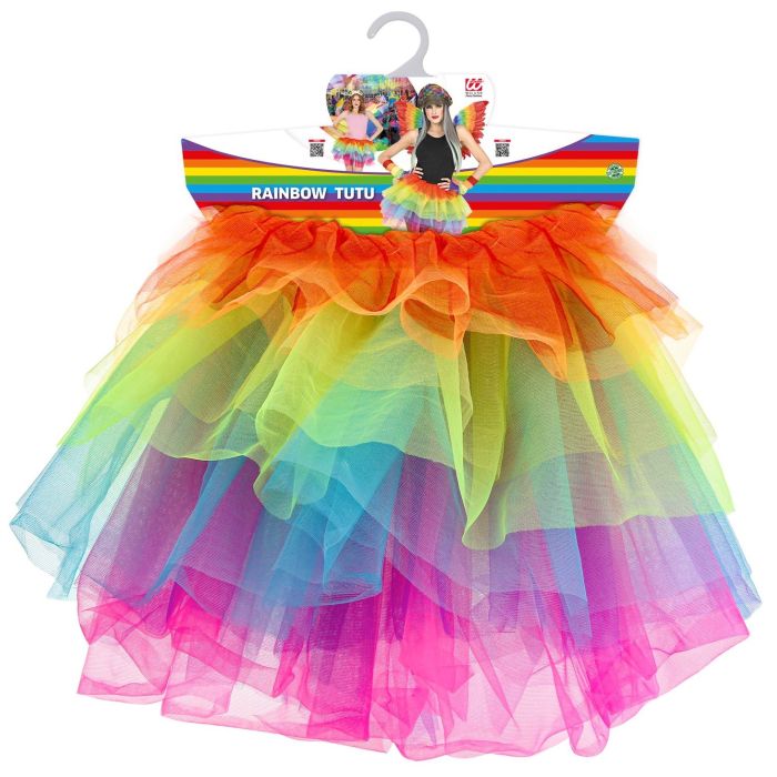 Een leuke kleurrijke petticoat of ook wel tutu genoemd. De tutu is 45cm. lang en valt net boven de knieen.Leuk om te dragen tijdens de Gaypride, Roze maandag of de carnaval natuurlijk. Alle regenboog accessoires die je er bij kan dragen zoals vleugels, hoeden, schmink zijn lost te bestellen in onze webshop of te koop in onze fysieke Feestwinkel in Roosendaal.
