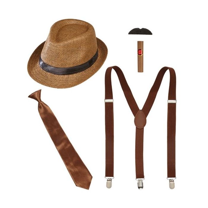 Dit jaren twintig verkleed set is helemaal geweldig om snel verkleed te zijn op een Roaring 2 party. De verkleed set bestaat uit een jaren 2 hoed, bretels, stropdas, snor en een sigaar om het helemaal af te maken.Peaky Blinders is helemaal de hit. Zorg dat jouw thema feest in deze jaren 2 style helemaal tot in de details is uitgevoerd.