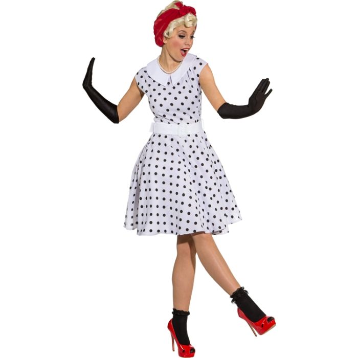 Dit Rock en Roll 5's jurkje bestaat uit de rock en Roll jurk en een losse riem. Echt een leuk kostuum dit Rock en Roll outfitje!