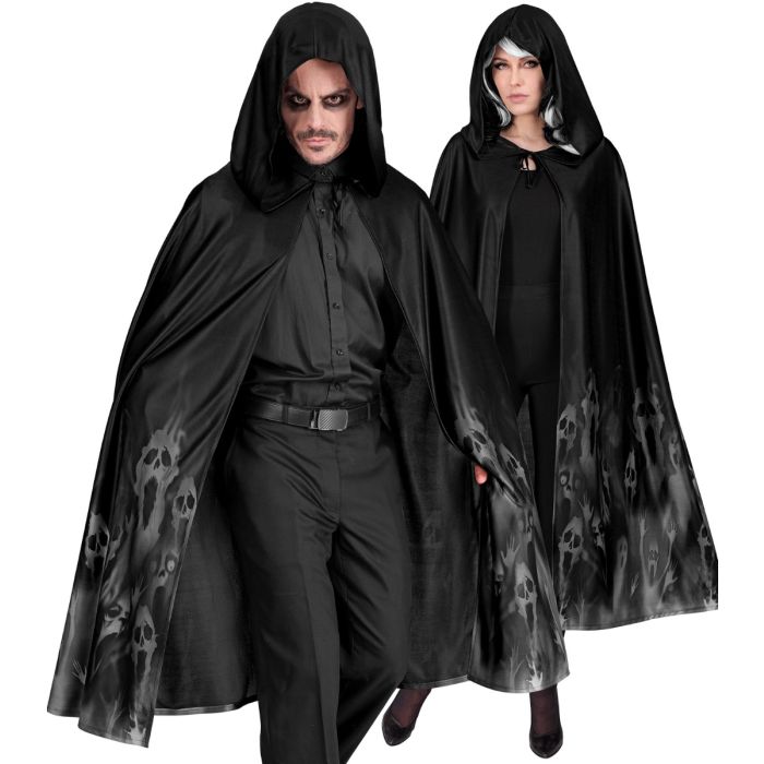 De cape is vervaardigd uit lichtgewicht materiaal, waardoor hij comfortabel te dragen is tijdens lange feesten of evenementen. Met een lengte van 120 cm zorgt deze mantel voor een dramatisch effect, perfect voor het creëren van een angstaanjagende uitstraling. De zwarte kleur maakt het gemakkelijk om de cape te combineren met andere kostuumelementen en accessoires.