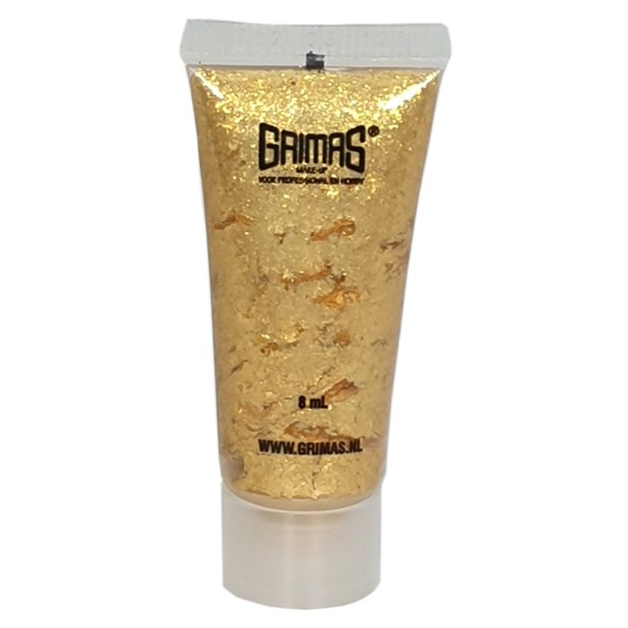 Shimmergel Grimas kleur 702 8ml.Plasticvrije Glitters kleur Goud nr. 702 Mag in de buurt bij de ogen worden gebruikt. De Shimmergel is geschikt voor kinderen. De transparante gel droogt op, en de platte vlokken blijven plakken. Kan ook over schmink heen worden aangebracht, dit zorgt voor een prachig effect tijdens de Carnaval. Of wat denk je voor die extra finishing touch bij een Princessen feestje. Door meerdere lagen aan te brengen krijg je een schubben effect.De gel kan worden verwijdert door met lauwwarm water de gel los te wrijven, indien nodig gebruik je zeep/shampoo. Er zijn 3 kleuren verkrijgbaar.