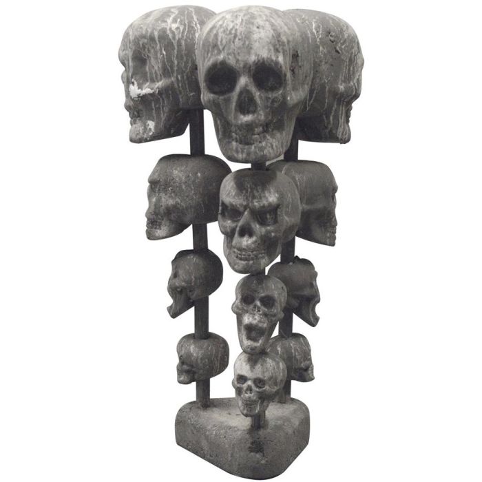 Een tafel decoratie met doodskoppen. Leuk om op tafel te zetten als decoratie. De Skull pilaar is 48x28cm. groot.