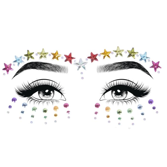 Regenboog jewels De toffe Face Jewels van Leg Avenue maken jouw Carnavals look helemaal af. Natuurlijk scoor je ook veel bekijks om dit juist naar een Festival te dragen. De Face Jewels zijn herbruikbaar, daarvoor gebruik je Grimas wateroplosbare Mastix.
