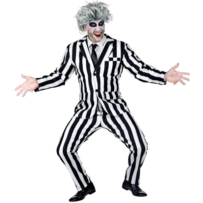 Dit zwart-wit gestreept Gohst kostuum bestaat uit 3 delen: De broek, het jasje en de stropdas.