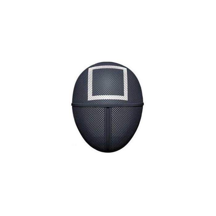 Vierkant teken Squid Game masker. Masker zwart met Vierkant teken uit de televisieserie van Netflix Squid Game. Het masker is van hard plastic met doorkijk gaatjes. Het masker is 1 maat, en heeft een zwarte elastiek band aan de achterkant.