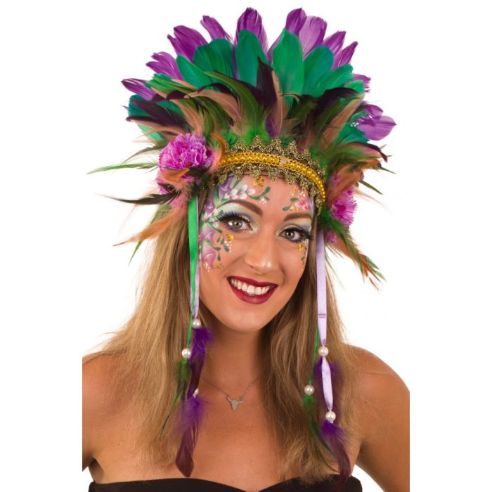 Maak je Carnaval onvergetelijk met de Veren hoofdtooi Hidatsa. Deze prachtige hoofdtooi, versierd met mooie veren, is de perfecte blikvanger voor elke feestelijke gelegenheid. Of je nu danst op de straten of gewoon wilt opvallen, deze hoofdtooi maakt je outfit compleet!