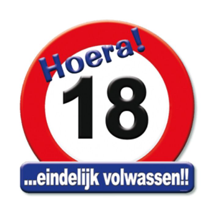 Verkeersbord heeft een afmeting van 5x5cm, is enkelzijdig bedrukt en is van dun karton. Een erg leuke en veel verkochte decoratie voor een verjaardagsfeest!