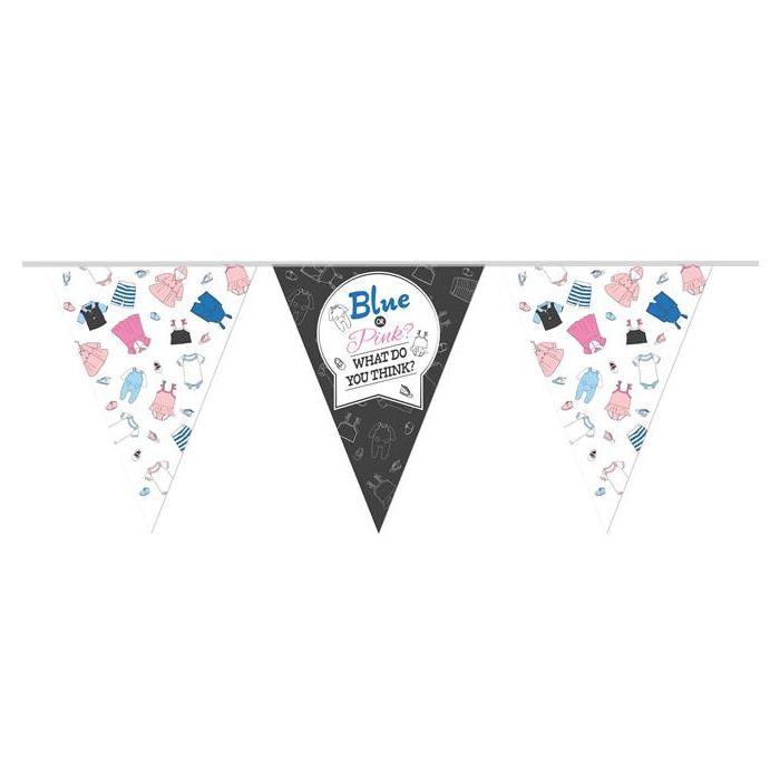 Vlaggenlijn Gender Reveal plastic 10mtr.