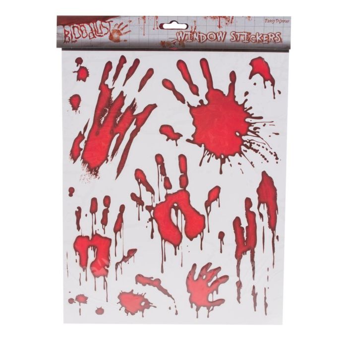 Window decoration with bloody hands