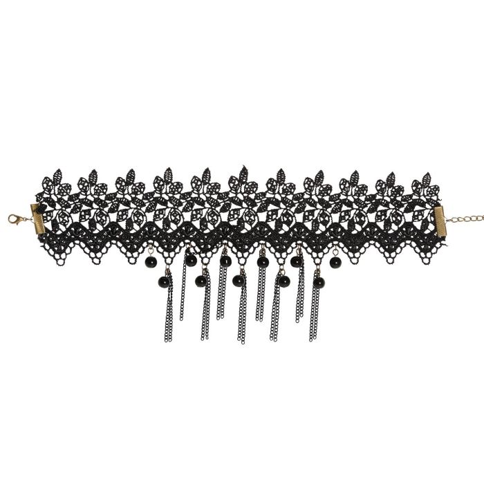 Een zwarte choker is een mooi sieraad voor je hals. De choker heeft mooie zwarte parels en is afgewerkt met kant. De choker is aan de achterkant verstelbaar.De choker is te gebruiken voor diverse themafeesten, zoals Halloween, charleston, maffia en the roaring twenties.