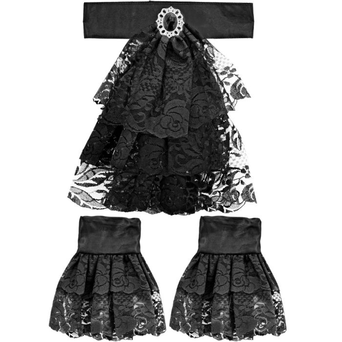 Voeg een vleugje elegantie toe aan je outfit met het zwarte kanten jabot en mouwen van Widmann Party Fashion. Dit stijlvolle accessoire is perfect voor Piratenfeesten, gothic en andere speciale gelegenheden zoals Halloween feesten of een avondje uit.