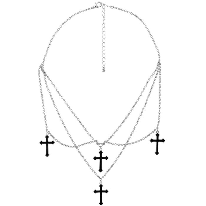 Maak je Halloween compleet met de stijlvolle zwarte kruizen halsketting van Widmann Party Fashion! Dit Halloween accessoire voegt een vleugje mysterie toe aan je outfit en laat je stralen op elk spookachtig feest. Het is perfect voor diegenen die houden van de details die het verschil maken.